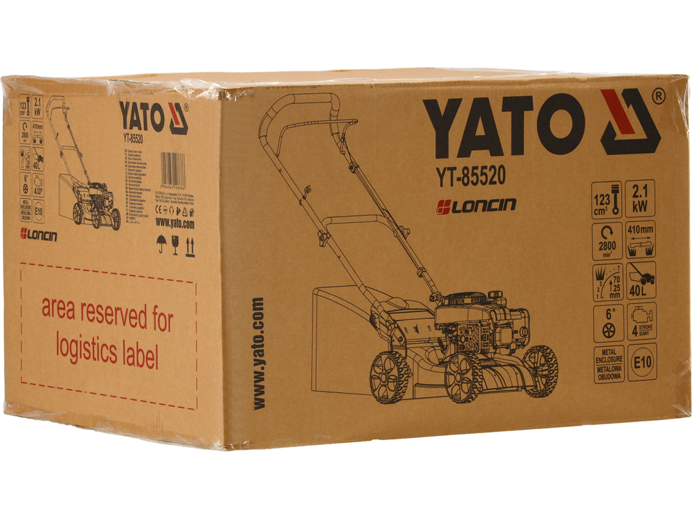 | Opis: | Benzinska kosilica opremljena LONCIN motorom zapremnine 123 cm3, koji pruža veliku snagu i učinkovitost. Radna širina je 41 cm, a stabilna konstrukcija olakšava košnju travnjaka na užim, neravnim i zahtjevnijim područjima, npr. na padinama, uz staze i cvjetne gredice ili u blizini nasada. Visina košnje može se lako podesiti pomoću poluge na 7 razina u rasponu od 25-75 mm. LONCIN motor LC1P65FE-3 tip: benzinski, četverotaktni, s gornjim ventilom zapremnina: 123 cm3 snaga: 2,1 kW maks. brzina vrtnje: 2800 o/min starter: ručni vrsta svjećice: F7RTC vrsta goriva: bezolovni benzin E10 vrsta ulja: SAE 15W-40 kapacitet spremnika goriva: 0,9 litara kapacitet korita za ulje: 0,5 litara širina košnje: 41 cm 7-stupanjsko podešavanje visine košnje u rasponu od 25-70 mm funkcije: stražnje izbacivanje, izbacivanje u košaru mrežasta košara za travu kapaciteta 40 litara metalno kućište ergonomska ručka obložena pjenom promjer kotača: 6" težina: 19,7 kg emisija buke: 96 dB |