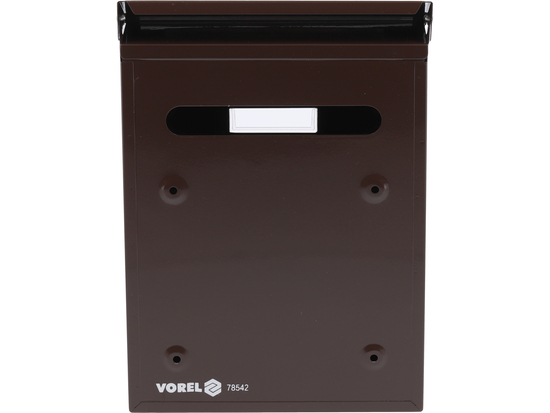 | Opis: | Poštanski sandučić dimenzije 285x200x60mm. Izrađen od čeličnog lima debljine 0,6 mm, pocinčan u smeđu boju. Sanduči ima navojni otvor na vrhu sa zaštitnim poklopcem. Prednja stranica ima ploču od plastike s mogućnošću postavljanja identifikacijske pločice s adresom ili prezimenom. Prednja vrata se zatvaraju na bravu. Set uključuje 2 ključa. Stražnja stranica ima montažne otvore. Neto težina 0,88kg. |